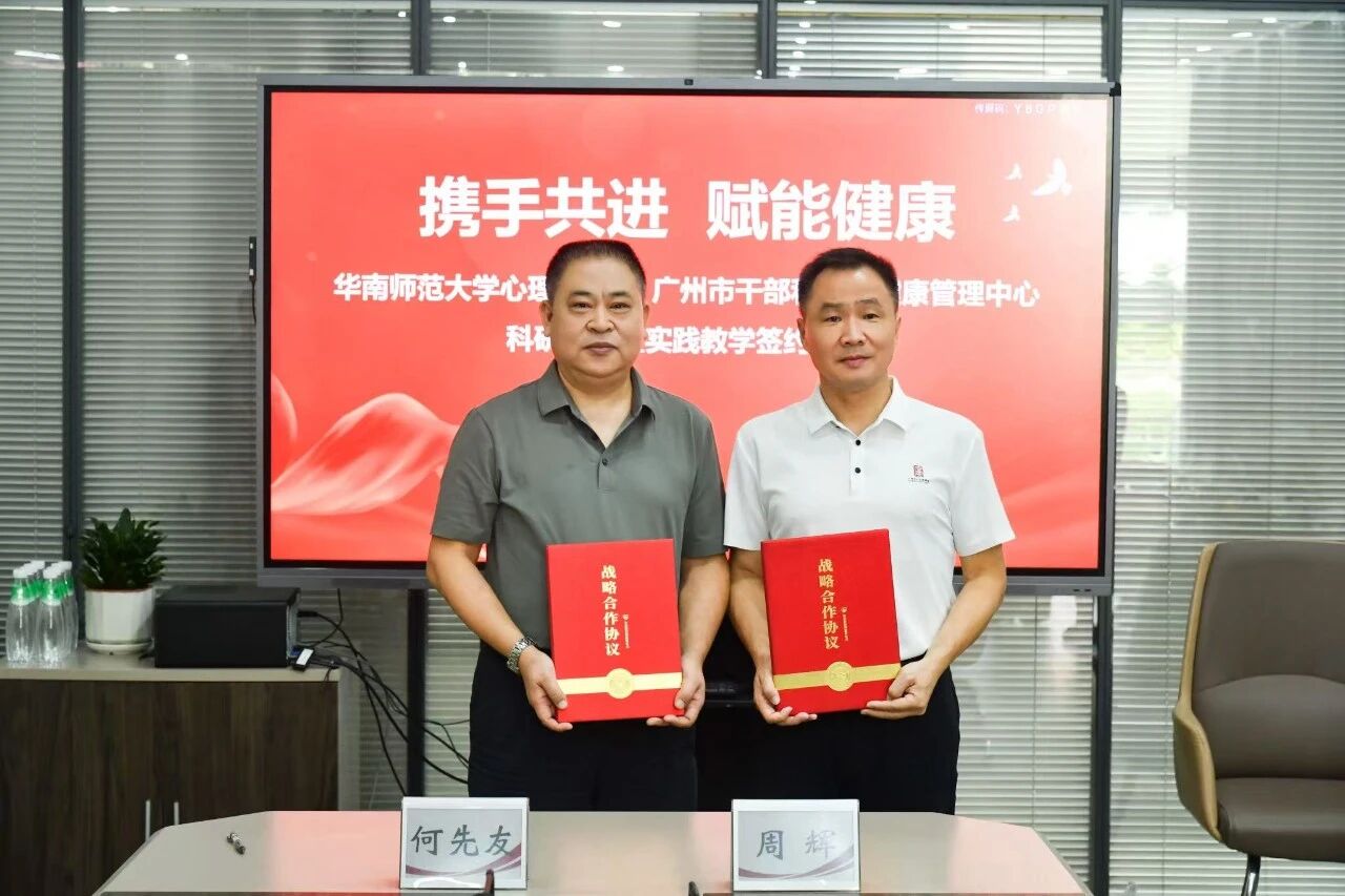 2025年9月11日,华南师范大学心理学院与广州市干部和人才健康管理中心(以下简称“中心”)在岭湖举行科研合作框架暨实践教学签约仪式。华南师范大学心理学院院长何先友、院长助理梅磊磊等专家,中心党委书记周辉、副主任刘娜及相关部门负责人共同出席签约仪式。