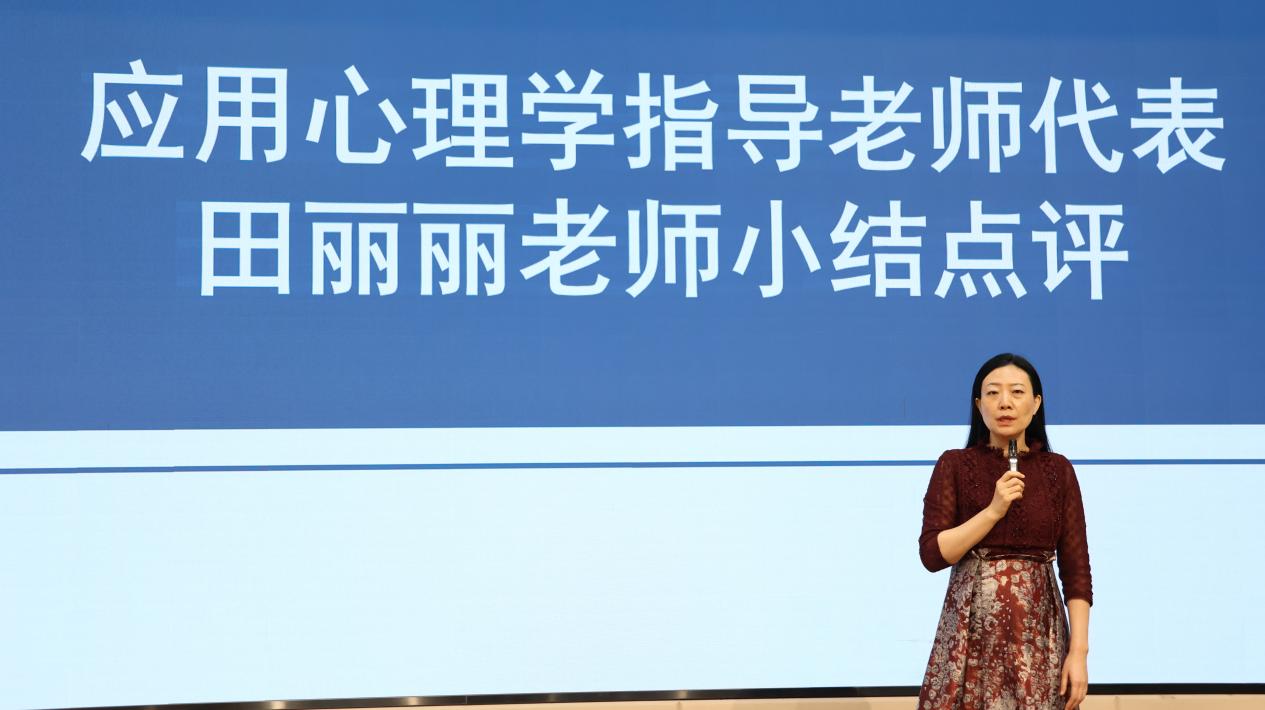 汇报环节结束后,各专业指导老师代表依次进行点评总结。心理学(师范)专业实习指导老师黄喜珊将实习比作 “大型体验式教学”,充分肯定了同学们在实践中的投入与成长;应用心理学专业指导老师田丽丽提出三点希望,鼓励同学们平衡好实习、考研与求职的关系,用心生活、认真做事,并向迷茫中的同学推荐了相关书籍,为大家答疑解惑;心理学(基地班)科研实习指导老师余可可赞赏同学们在科研中实现理论与实践的深度结合,期待大家在学术道路上持续探索、深耕不辍。