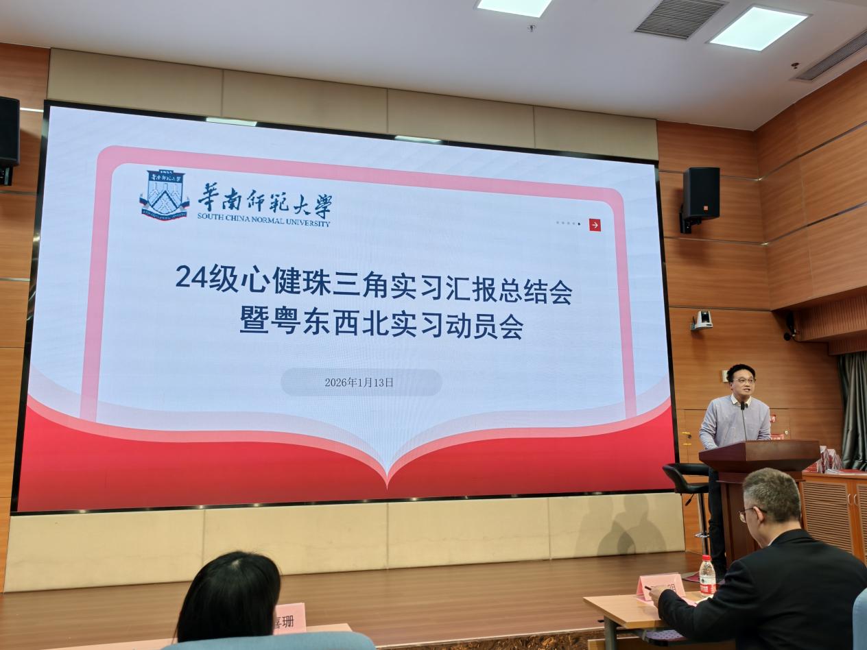 1月13日下午,心理学院于520会议室召开心健珠三角实习汇报总结会暨粤东西北实习动员会。心理学院主管研究生工作副院长王瑞明教授,心理健康教育专业导师组负责人黄喜珊教授,实习指导老师张得龙教授、杨锦绵老师,研究生办公室主任田良苏老师,2024级研究生辅导员与指导教师黄学超老师,教务员林妮娜老师出席了本次会议,会议由心理学院党委组织员黄学超老师主持,2024级、2025级心理健康教育硕士研究生参与了本次会议。