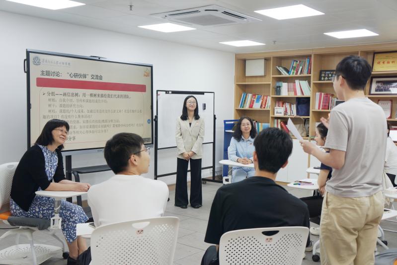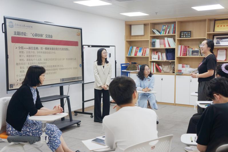 刘冬梅书记与党员们亲切交谈。她强调,“心研导学”科创先锋党支部汇聚不同学段、不同研究方向的优秀党员,既激发个人活力,也助力解决同学们的实际困惑与现实问题,希望党支部党员充分发挥先锋模范作用,在互学互鉴中不断提升科研能力与思想境界。陈玉萍副书记回应了党员们的疑问,她指出,“心研导学”科创先锋党支部承载着推动党建与科研创新深度融合的重要使命,希望党支部党员共同努力将党支部建设成为跨导学团队交流的枢纽平台。